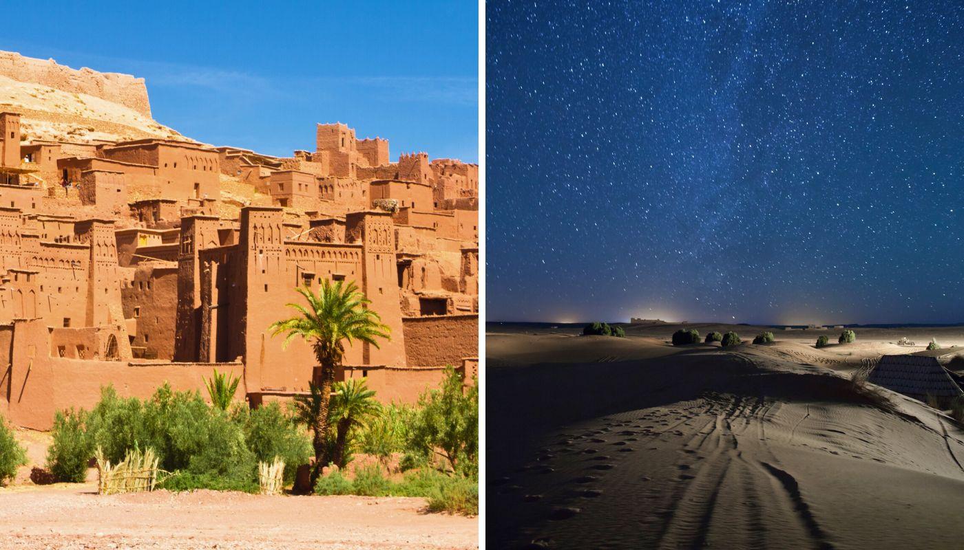 Uno de los circuitos más típicos para explorar el desierto del Sáhara es aquel que tiene como punto de partida el pueblo de Merzouga, situado al sur de Marruecos y próximo a la frontera con Argelia. Son muchos los que acceden a este lugar desde la pintoresca ciudad de Uarzazat, construida en los colores del desierto y perfecta para ir familiarizándote con tu próximo destino.